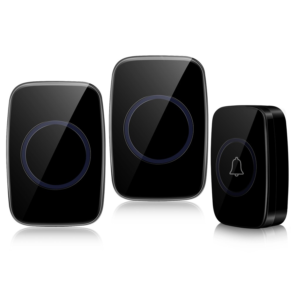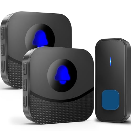 Wireless Doorbell, Waterproof Wall Door Entry Bell Cordless Door Chime Kit with 2 Plug-in Receivers at 1,000feet / 300m Range, 55 Chimes, 5-Level Volume, LED Light