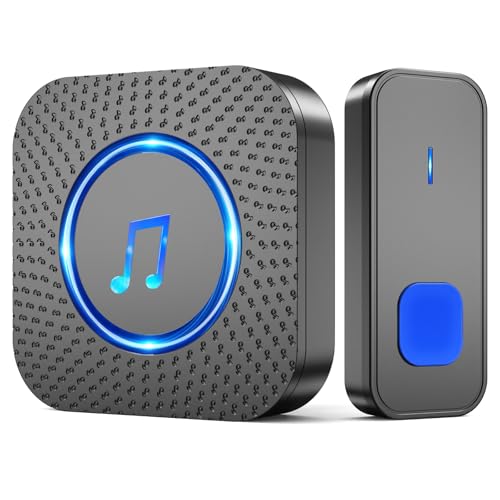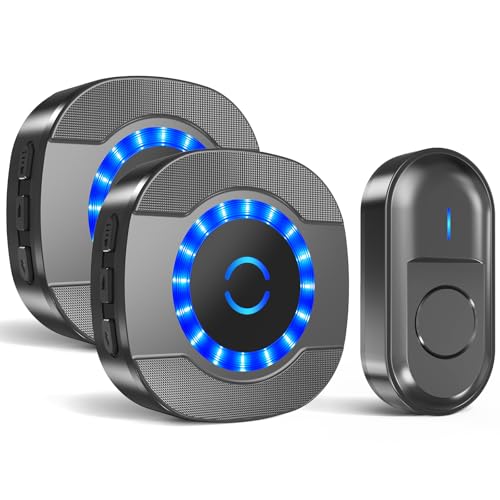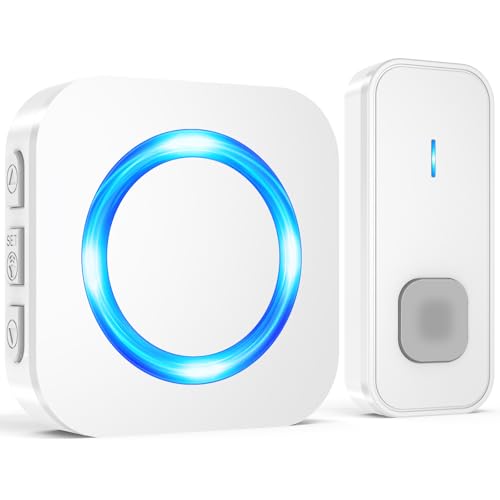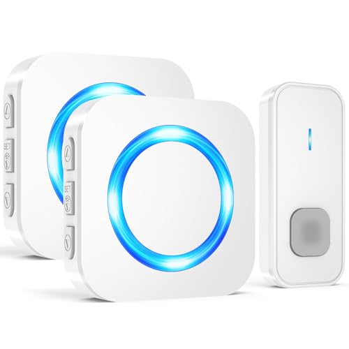 Lexi Wireless Doorbell IP65 Waterproof Wall Battery Operated Cordless Door Chime Kit with 300m Range 55 Chimes, 5-Level Volume & Blue Light Best for Plug in Door Entry Bell