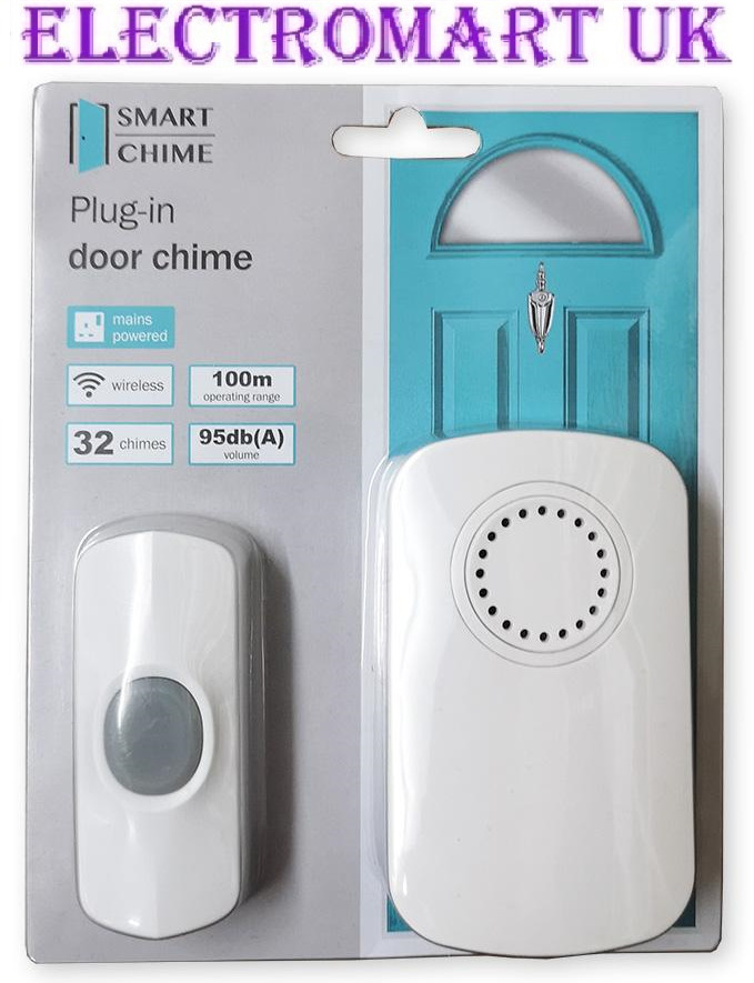 PLUG IN WIRELESS DOOR CHIME BELL WITH SOCKET DOORBELL DOORCHIME KIT 100M