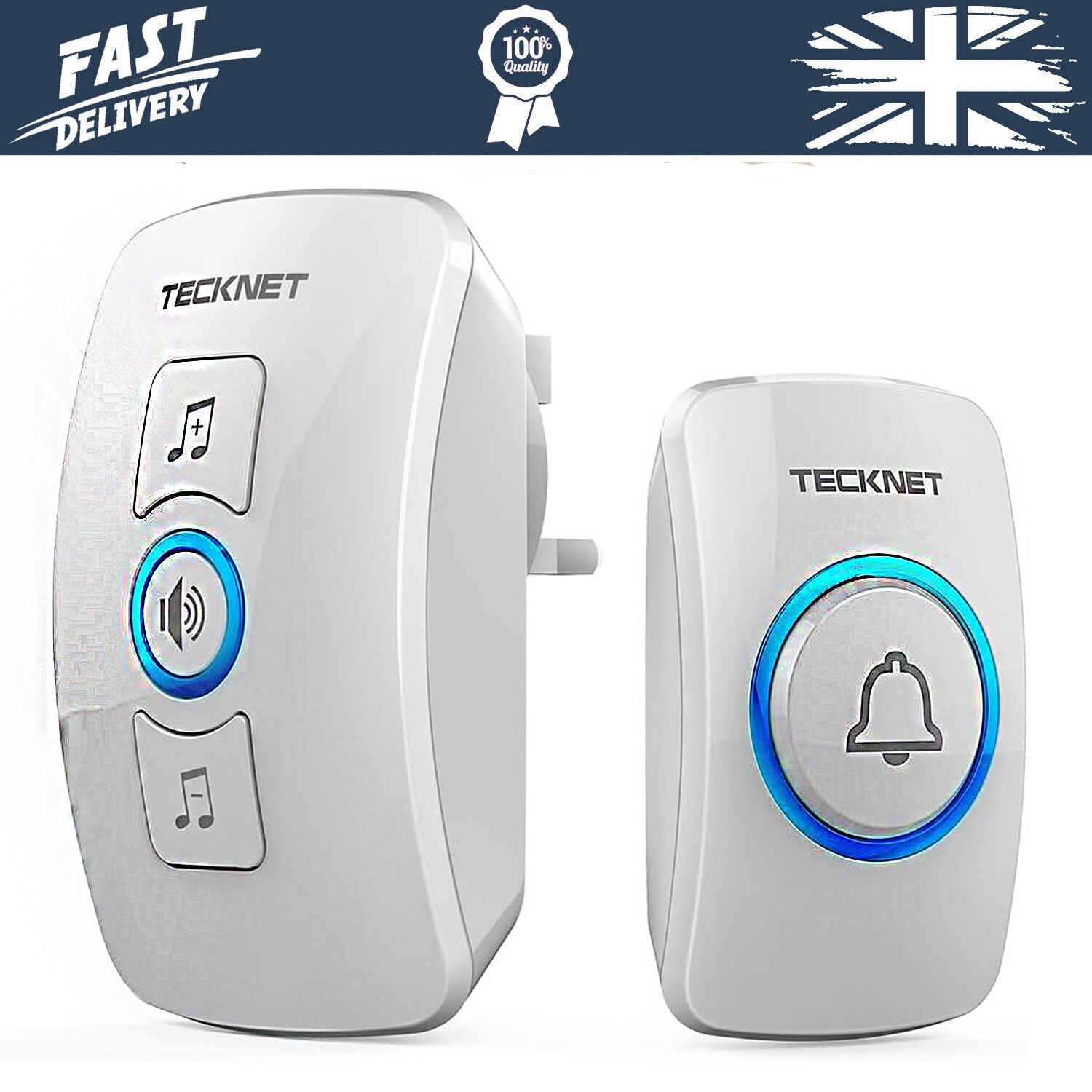 TECKNET Wireless Doorbell, Waterproof Wall Plug-In Door Bell Cordless Chime Kit