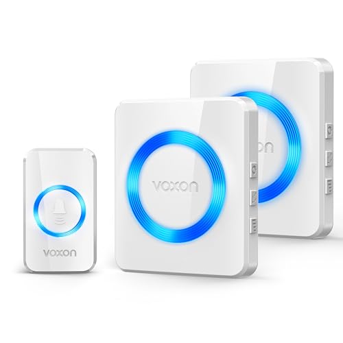 VOXON Wireless Doorbell with 2 Receivers IP65 Waterproof Plug in Door Bell Batt