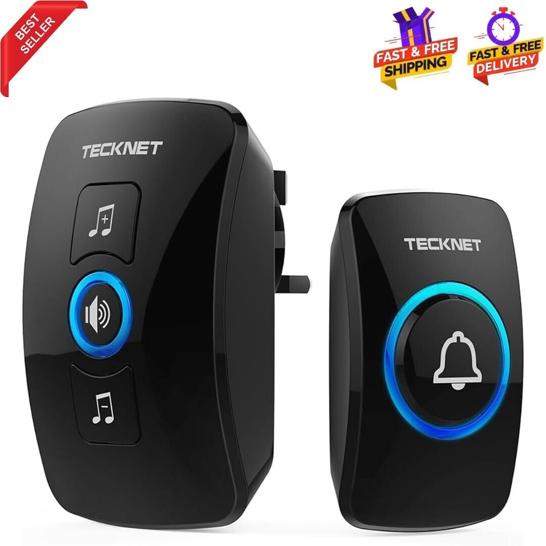 TECKNET Wireless Doorbell, Waterproof Wall Plug-in Door Bell Cordeless Chime Ki