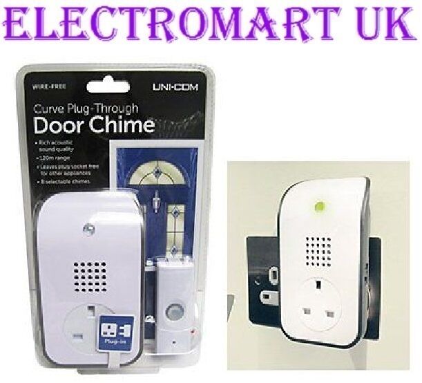 WIRELESS CORDLESS PLUG IN PLUG THROUGH DOOR BELL 8 SELECTABLE CHIMES 120M RANGE