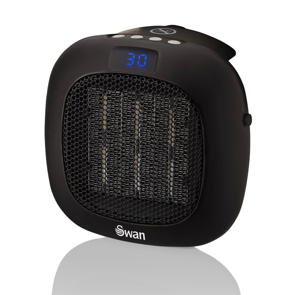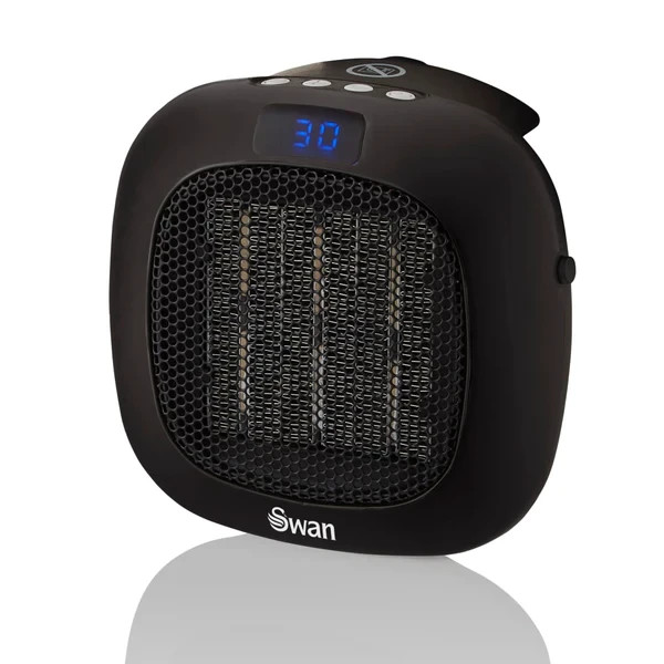 Swan SH27010N Plug-In Fan Heater with 12 Hour Timer, LED Display and Overheat Protection, Black