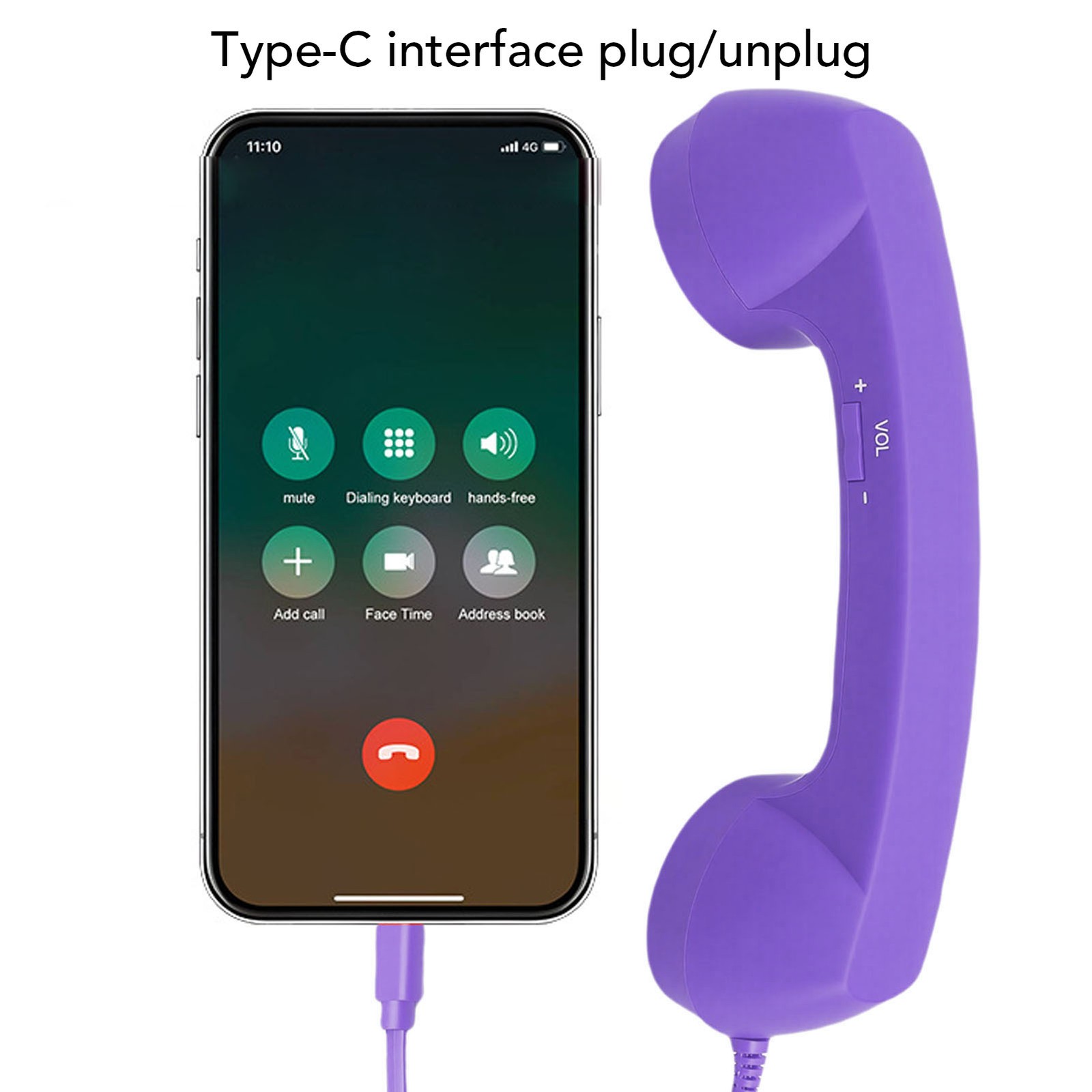 Retro Phone Handset Purple Type C Wired Plug In Handheld Cell Phone Receiver SG