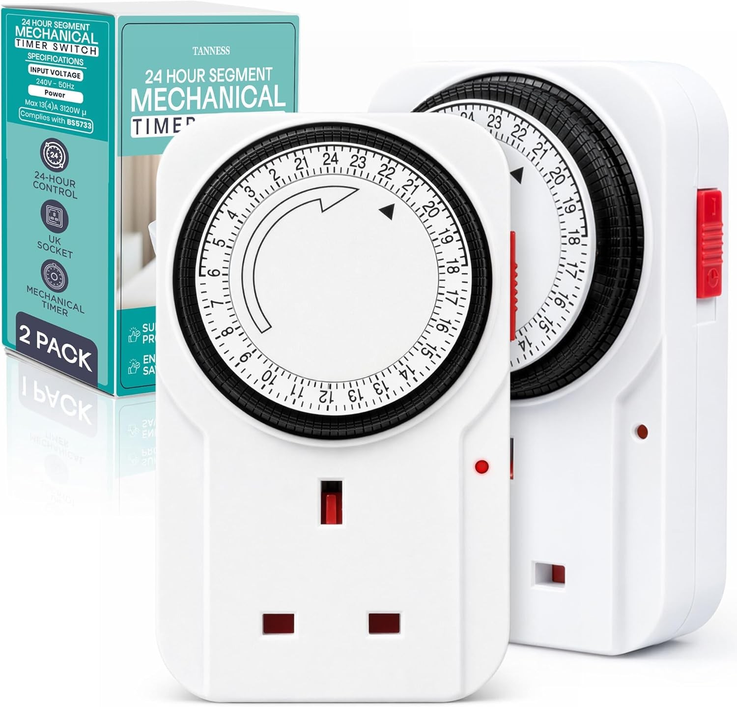Status: IONOS 24 Hour Plug-in Timer Switch | 24 Hour Segment Timer Light Switch | White UK Plug | ION24HT10 | Mechanical Option B (Pack of 2)