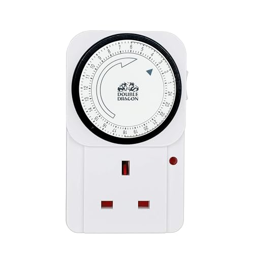 Double Dragon Pack of 1, 24 Hour Mechanical Timer Plug Socket| Programmable UK 3-Pin Timer Switch with 15-Minute Intervals |13A 3120W Energy-Saving Plug-in Timer for Lights, Appliances & Home Security