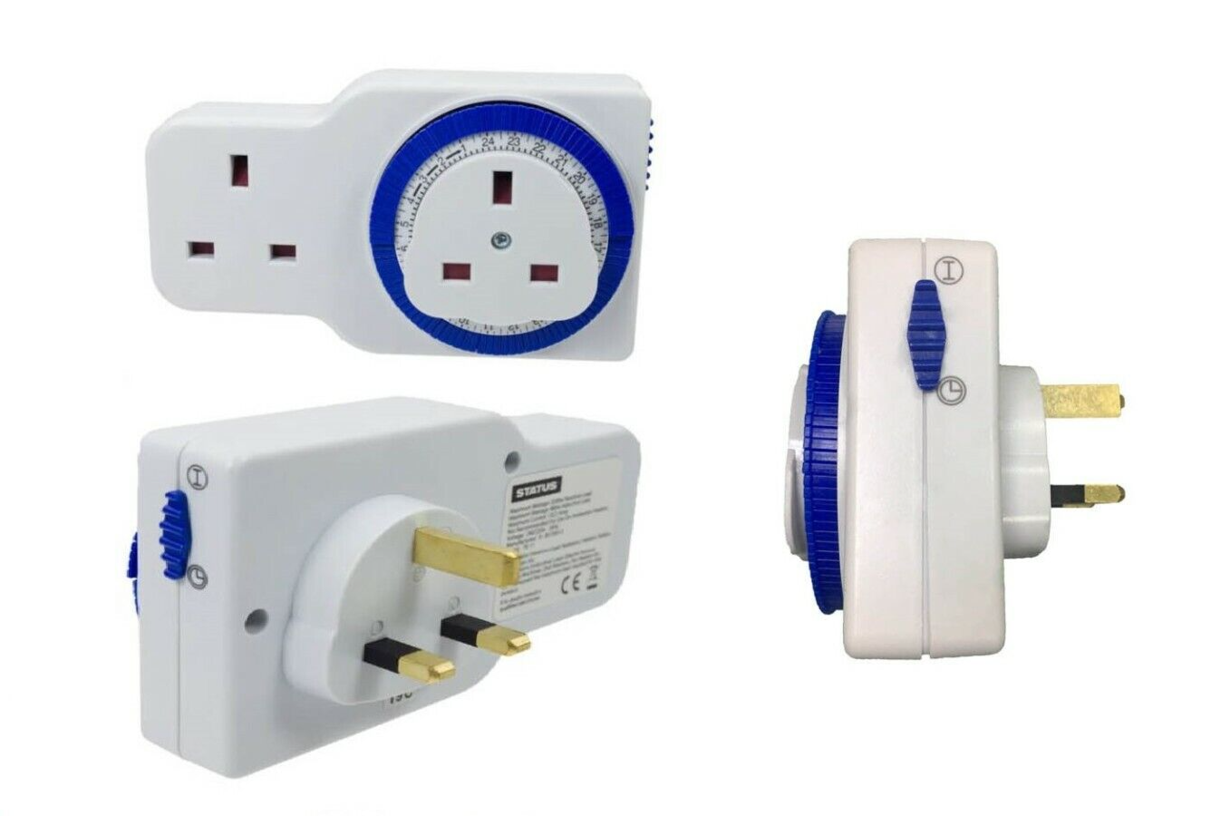 24 HOUR MAINS PLUG IN TIMER SWITCH TIME CLOCK SOCKET UK PIN LIGHTS -STATUS