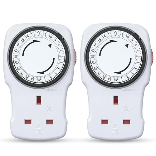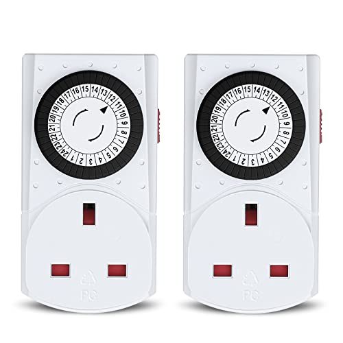 G-Homa Mechanical Timer Plug Socket UK, 24 Hour Programmable Energy Saving Plug-in Indoor Timer Plug Switch for Lights, Lamps and Home Appliances, Daily On/Off Cycle, CE Listed (2 Pack)