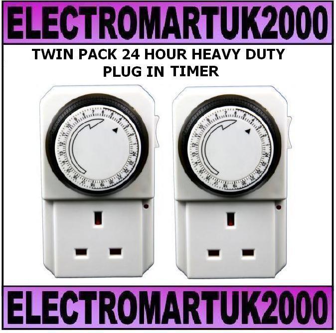 2 x 24 Hour 24hr Mains Plug In Timer Switch Time Clock Socket UK 3 Pin Adapter