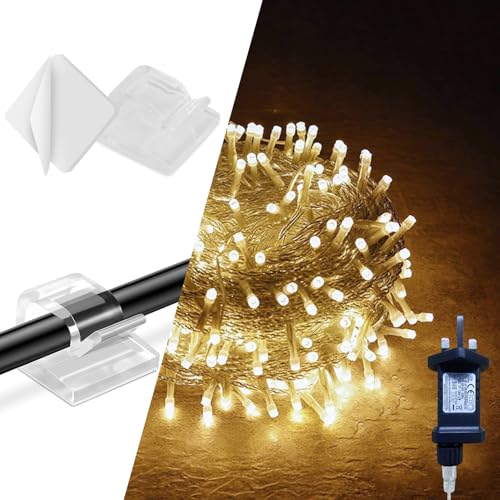 Gresonic Fairy Lights Mains Powered with 30Pcs Cable Clips, 10m 100LED Warm White Plug in 8 Modes Timer String Light Waterproof for Bedroom/Outdoor/Garden/Indoor/Party (100LED + 30pcs Cable Clips)