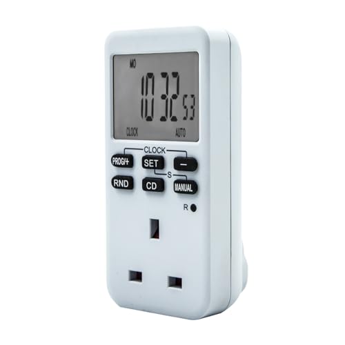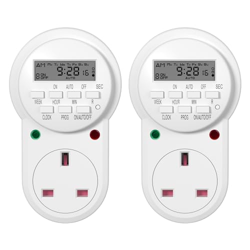 HBN Digital Programmable Plug-in Timer Socket, 24 Hours/7 Day Weekly Electronic Light Timer Plug with 9 On-Off Programs and Anti-Theft Random Function (13A/3120W, 2 Pack)