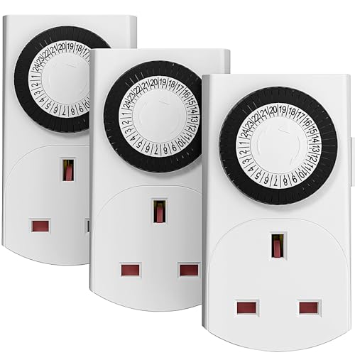 HBN Mechanical Timer Plug Socket, 24 Hour Programmable Energy Saving Compact UK Plug-in Indoor Timer Socket for Lights, Lamp and Home Appliances (13A/3120W, 3 Pack)
