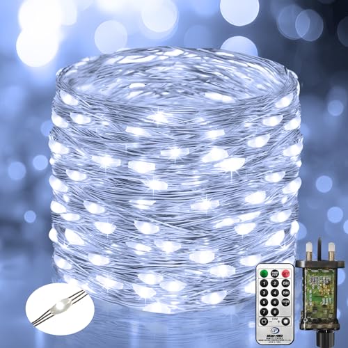 FFZZKJ 8 Modes Fairy Lights Mains Powered Outdoor 33Ft/10M 100 LED String Lights Plug in Indoor with Timer IP44 Waterproof for Christmas, Gazebo, Garden, Bedroom, Cold White
