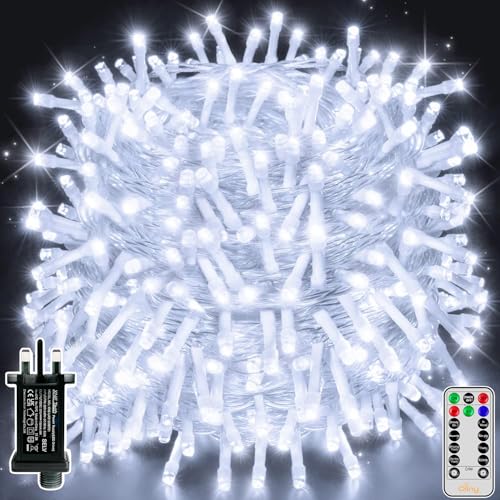 Christmas Tree Lights 1000 LED 25m Cool White - 2.5cm Bulb Distance Fairy String Lights Plug in with Timer and Memory Functions - Suitable for Outdoor/Indoor Use