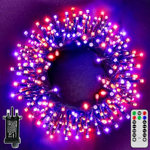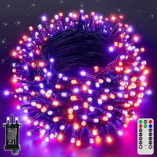 Hopexy 50m 500 LEDs Halloween Lights, Waterproof Orange and Purple Fairy Lights Mains Powered 8 Modes/Plug in/Timer/Indoor Outdoor Lights for Halloween Party Porch Patio Garden Autumn Decoration