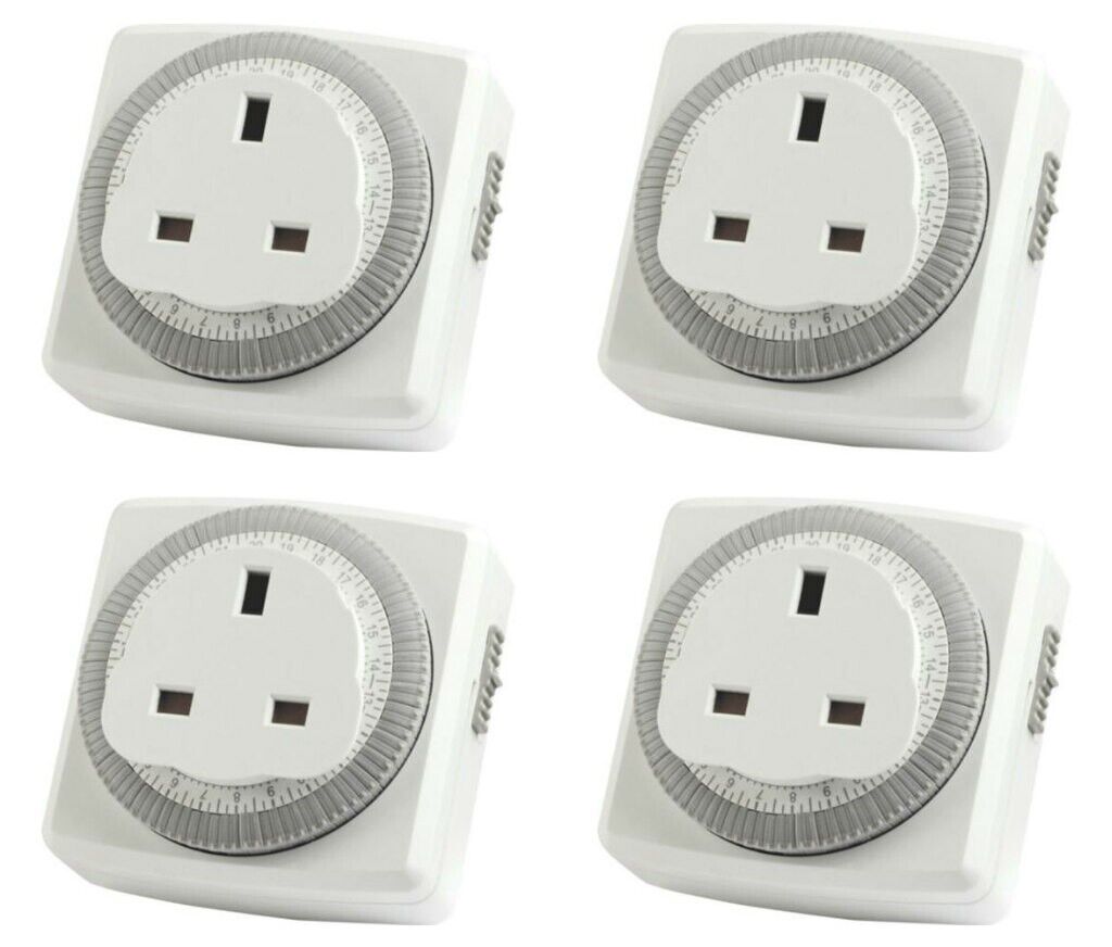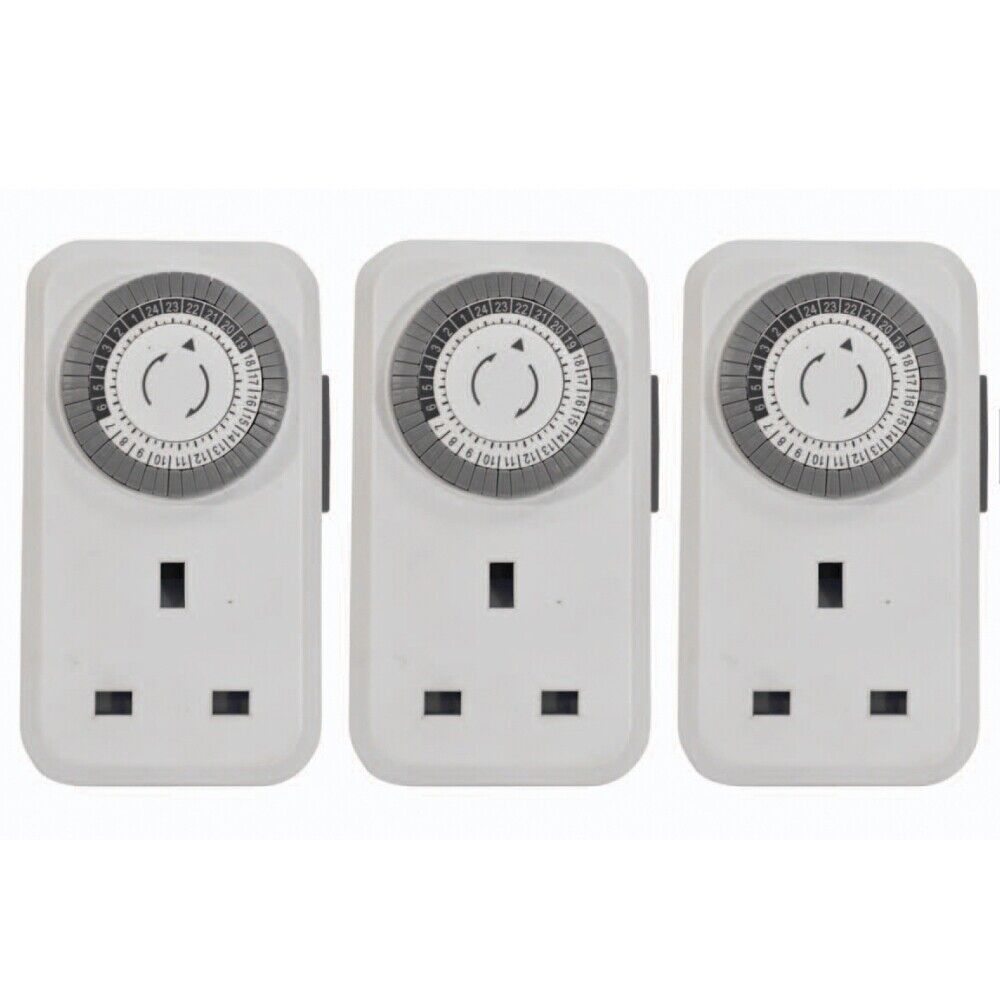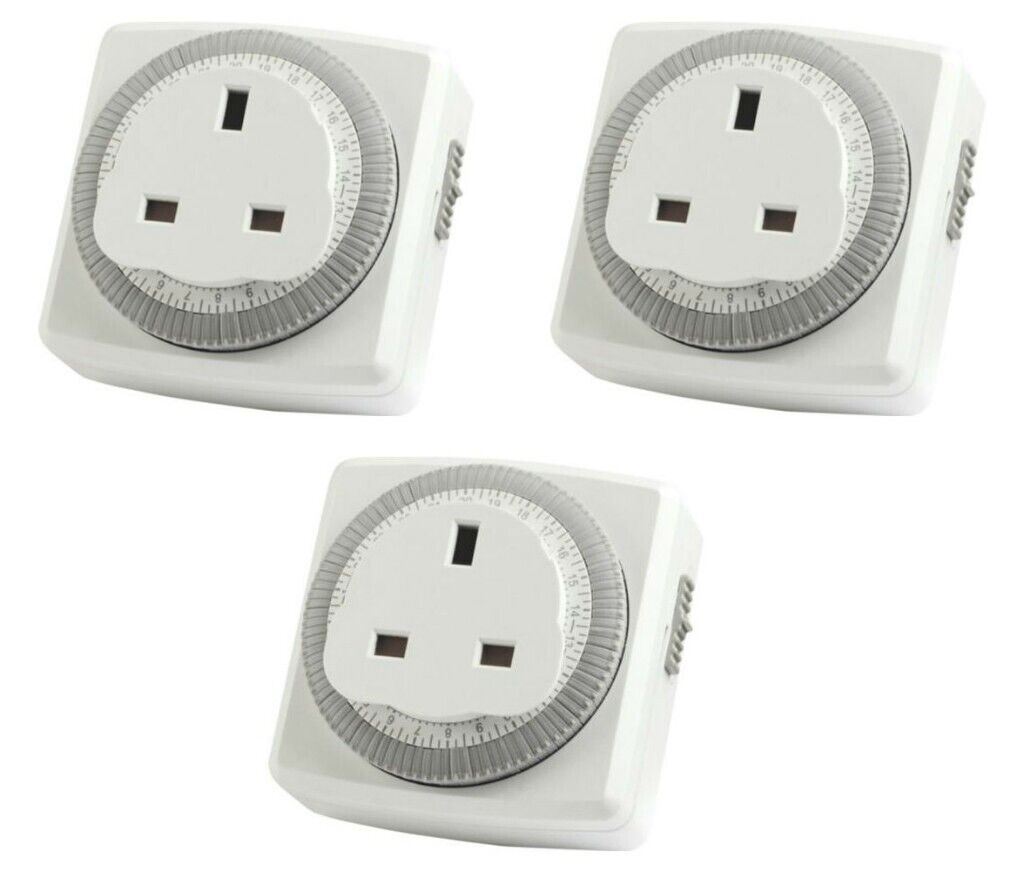 3 X PLUG IN MECHANICAL SEGMENT TIME TIMER TIMERS SWITCH 24 HOUR MAINS 13A
