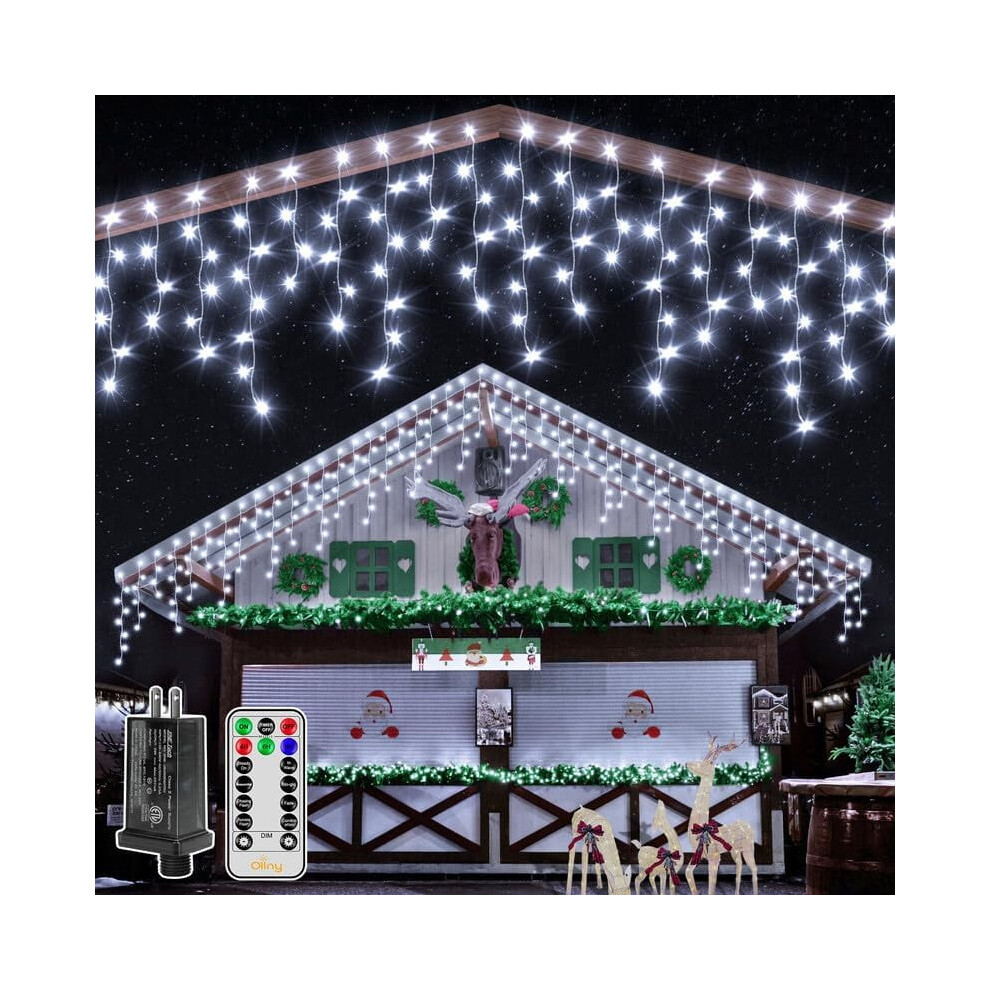 Ollny 396LED 32FT Icicle Lights Cool White - 8 Modes Timers Remote, Waterproof Plug-in Connectable for Outdoor/Indoor Holiday Decor