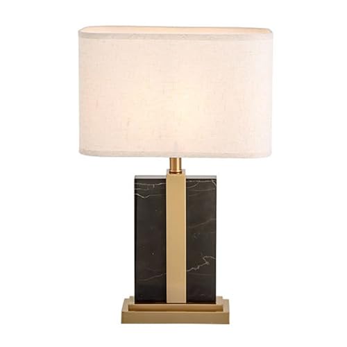 HADWAO Rustic Farmhouse Table Lamp, Fabric Drum Shade Desk Lamps, Metal Rectangular Nightstand Reading Light, Bedroom Living Room House Office Entryway Plug in Desk Lamp (Color : Black)
