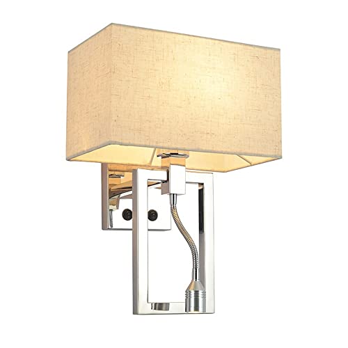 NOKXDKJWT Led Stainless Steel Wall Sconces E27 Fabric Wall High-End Light Plug-in Salt Lamp Suitable for Corridor, Bedroom, Studyroom Decorative Lamps Sconce Silver Durable