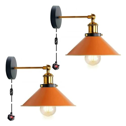UESJCVXS 2 PCS Industrial Dimmable Wall Light Plug in Stepless Dimming Vintage Wall Lamp with Switch Bedroom Lamps with Dimming Switch Plug E27 Metal Orange Wall Sconce for Living Room Restaurant
