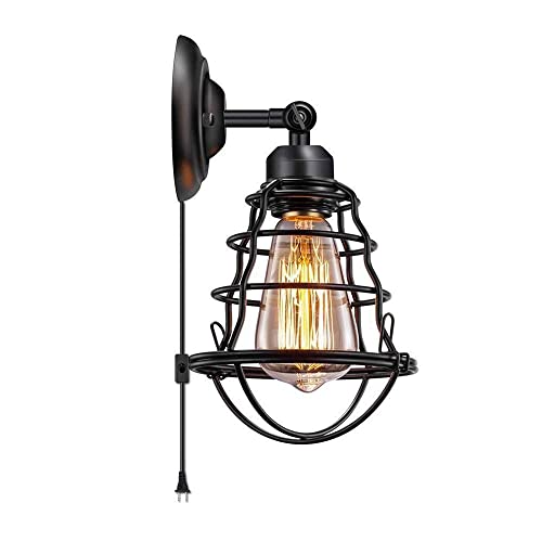 Exposed Bulb Metal Lamp, Vintage Plug-In Wall Lamps for Living Rooms Dining Rooms