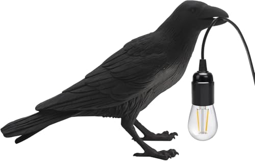 Black Birds Table Lamps Resin Crow Desk LED Lamp E27 Base Modern Raven Art Deco Bedside Decor Plug in Cord Table Lamps for Bedroom, Office, College Dorm, Right Black Wall (Pack 1)