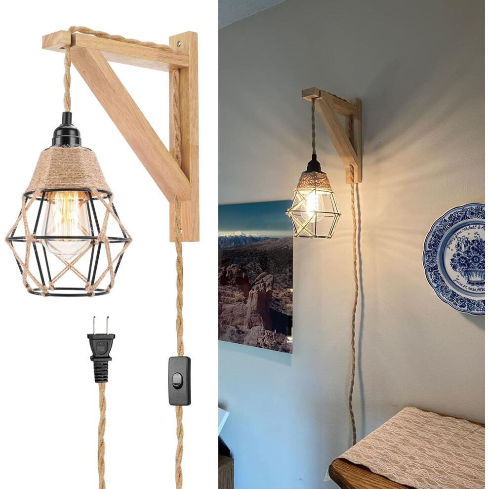 Wall Lamp with Plug in Cord - Plug in Wall Sconces, Farmhouse Hanging Lamps That Plug into Wall Outlet, Rustic Wall Mount Lamp