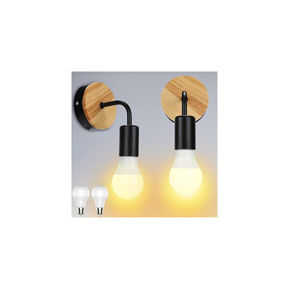 LEDSone Retro Plug in Wall Light Lamps with 2m Plug in Cable Cord and Dimmer Switch, Edison Metal Swing Adjustable E27 Wall Sconce, Vintage Industrial Indoor Reading Bedside Lamp (Black 2 Pack)