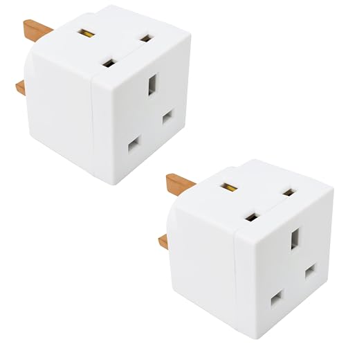 Double Dragon 2-Pack 13A 2-Way 3-Pin Multi Plug Adapter | Converts 1 Plug into 2 | Cube Wall Socket Splitter for Multiple Connections | Child Safety Shutters | UKCA & CE Certified