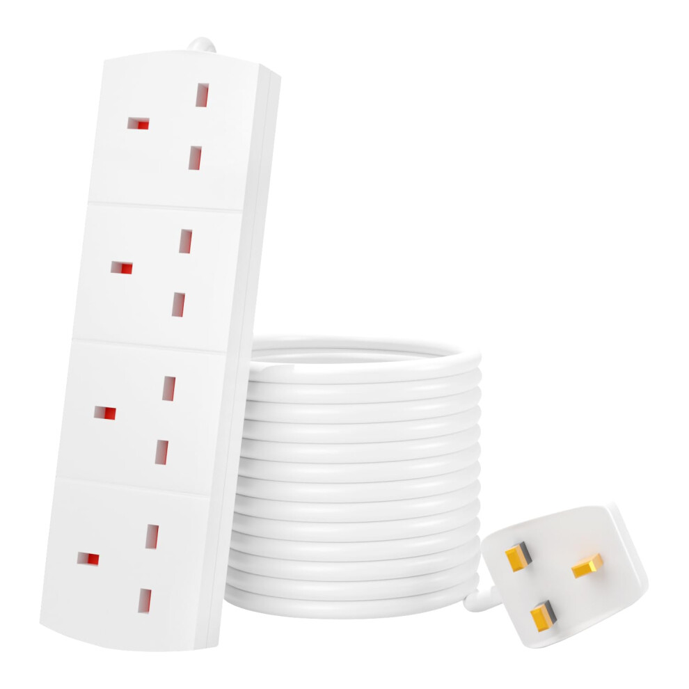 Extension Lead UK Pin Plug and Cable, 4 Gang Way Socket Outlets Power Strips (13 A) Surge Protection Plug with 1m Extension Cord for Multiple Applian