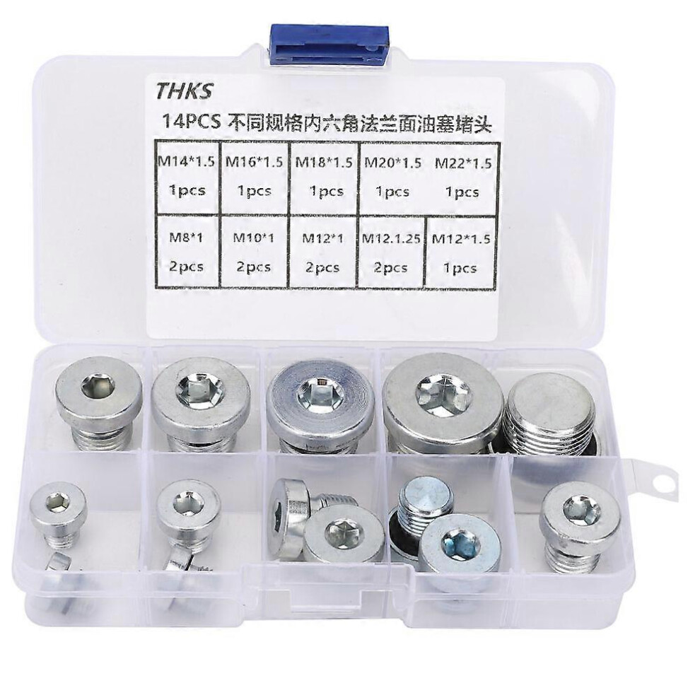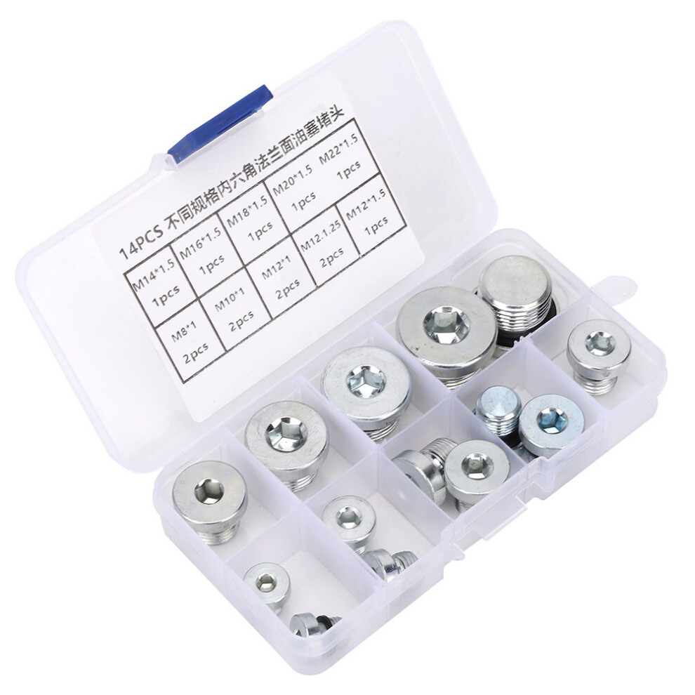 14 Pcs Drain Plug Hex Socket Oil Flange Pan Drain Nut Set, Multiple Sizes