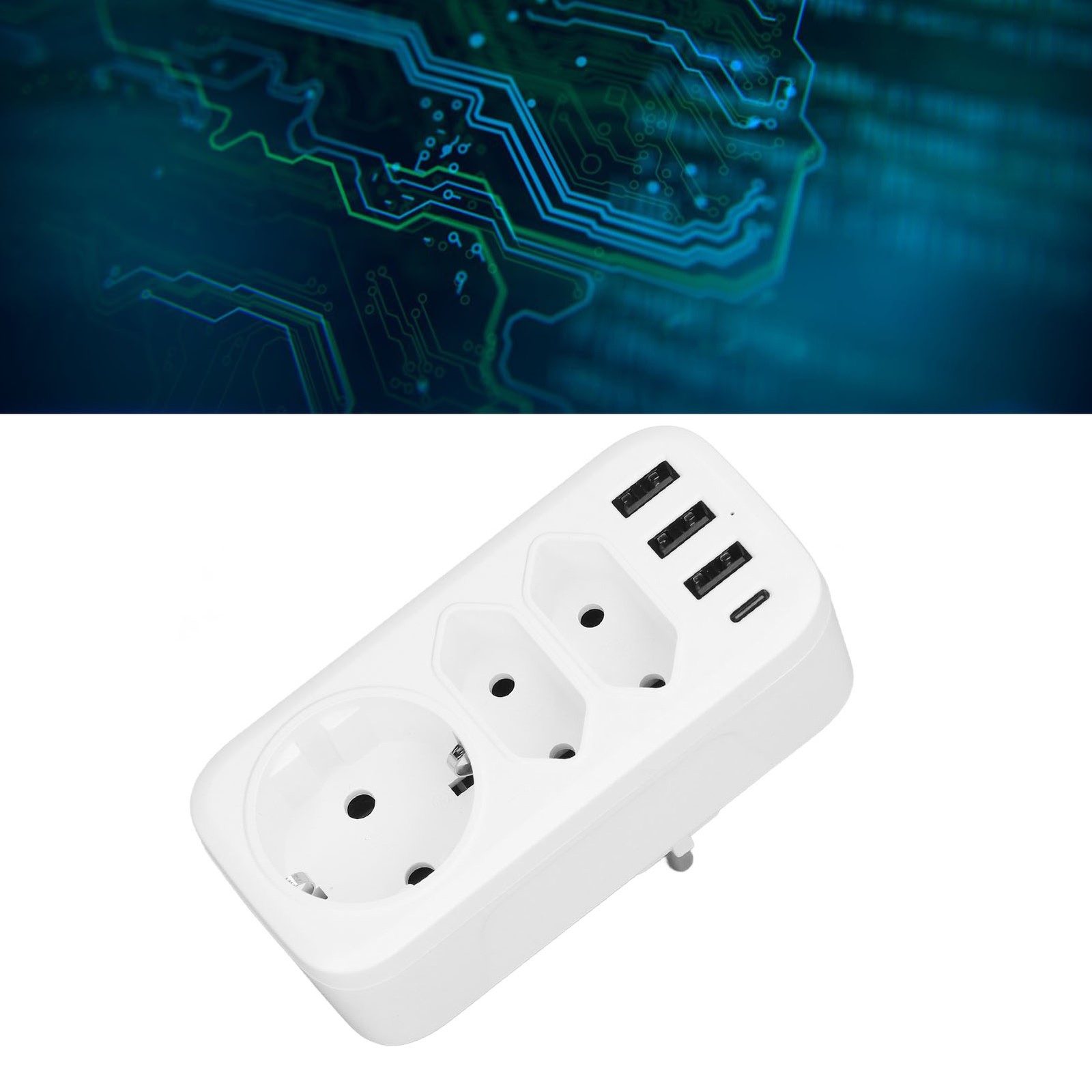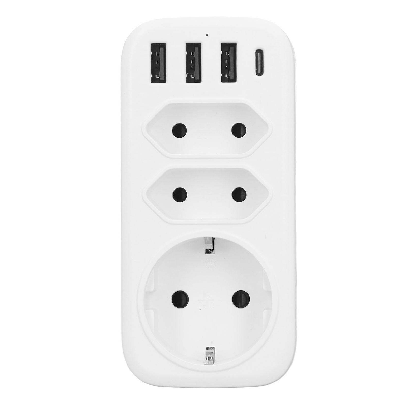 7 In 1 Multiple Plug Socket 3 Way Triple Adapter 3 USB Interfaces 1 Type C Inte❀
