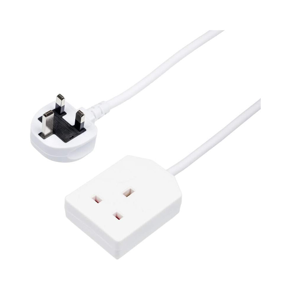 Extension Lead 1 Way Gang 2 Meter Single Socket Mains Power Extension Cord 13A Fused Strip 3Pin UK Plug Power Cable Ideal For Multiple Appliances Of