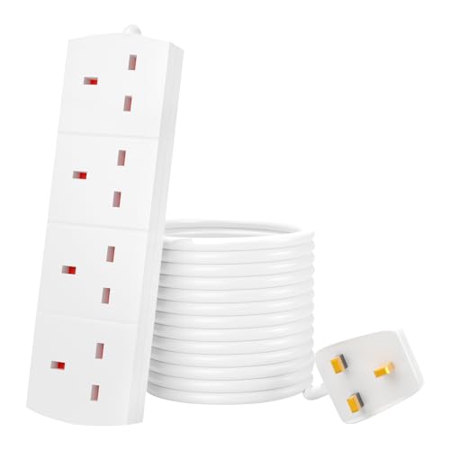 Extension Lead UK Pin Plug and Cable, 4 Gang Way Socket Outlets Power Strips (13 A) Surge Protection Plug with 1m Extension Cord for Multiple Appliances of Home,Office-White