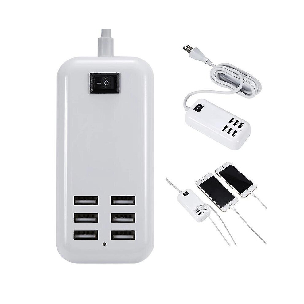 (EU Plug) 6 Ports Usb Charger Desktop Wall Hub Multiple Charging Station Power Adapter Extension Socket