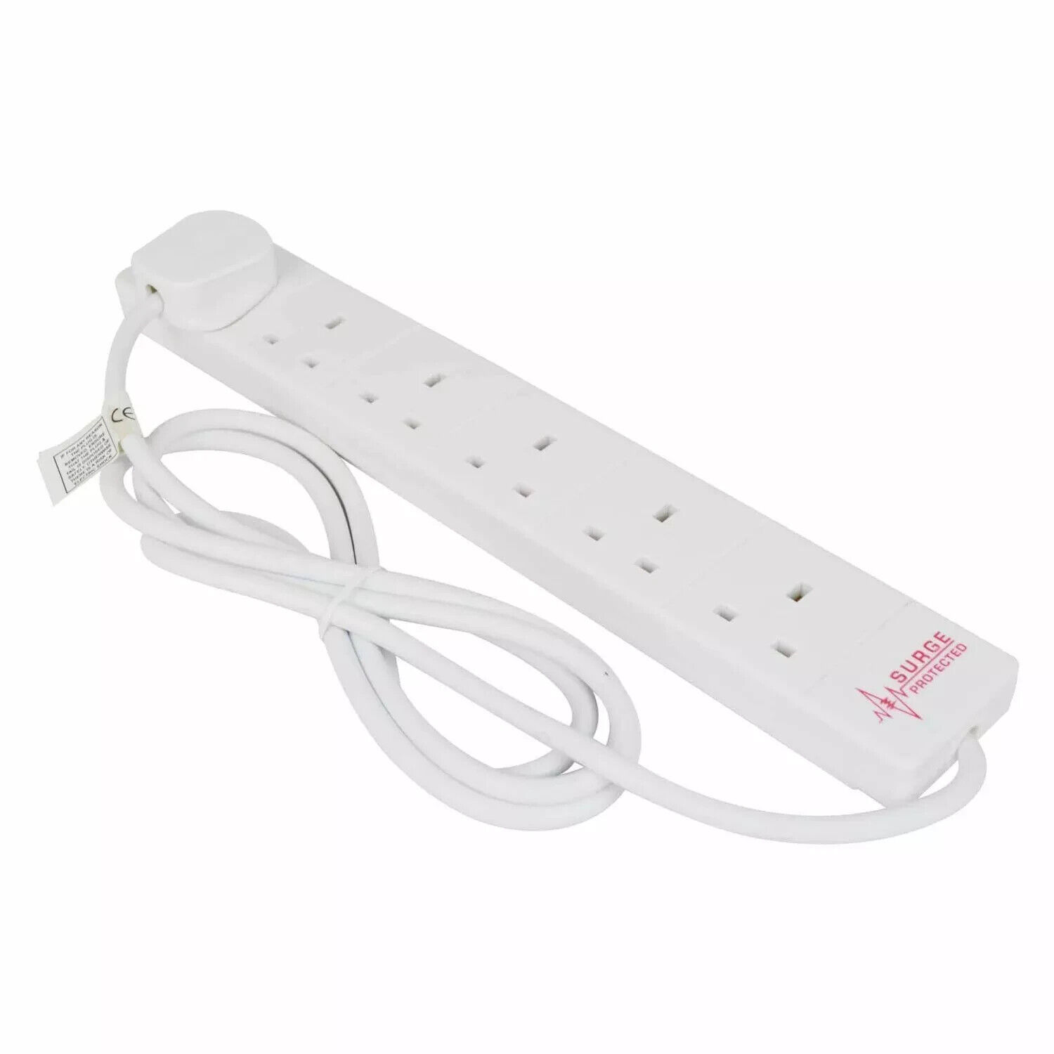 6 Way 2 Meter Extension Lead Cable Multiple Plug Socket & Surge Protected