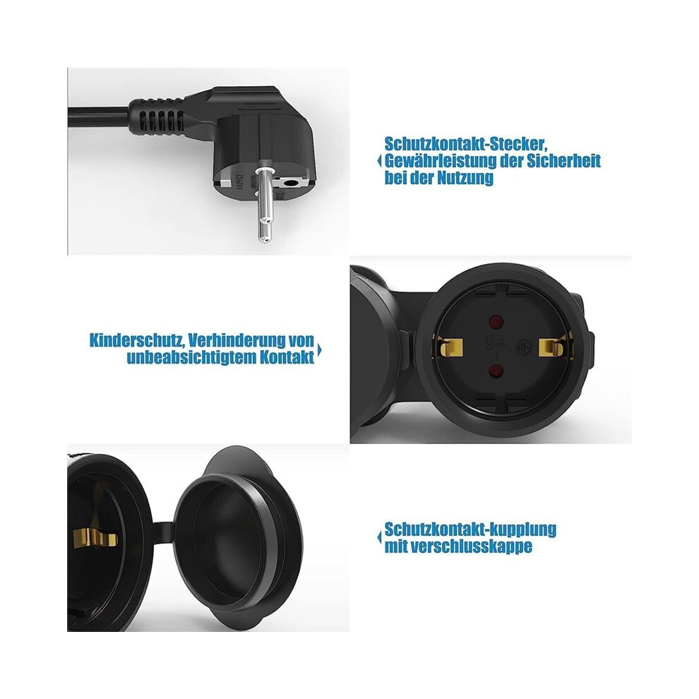 Double Plug for Socket, Extension Cable with 2 Schuko Sockets, Multiple Socket Outdoor, 16 A / 250 V,EU Plug