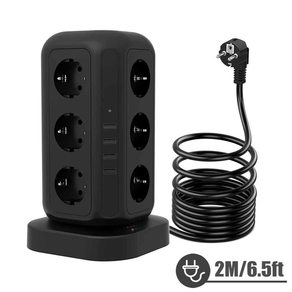 TESSAN Multiple Socket Power Strip tower with 3/6/12 Outlets & 3/4 USB Ports, EU Plug Socket Tower with 1.5m/2m Extension Cable