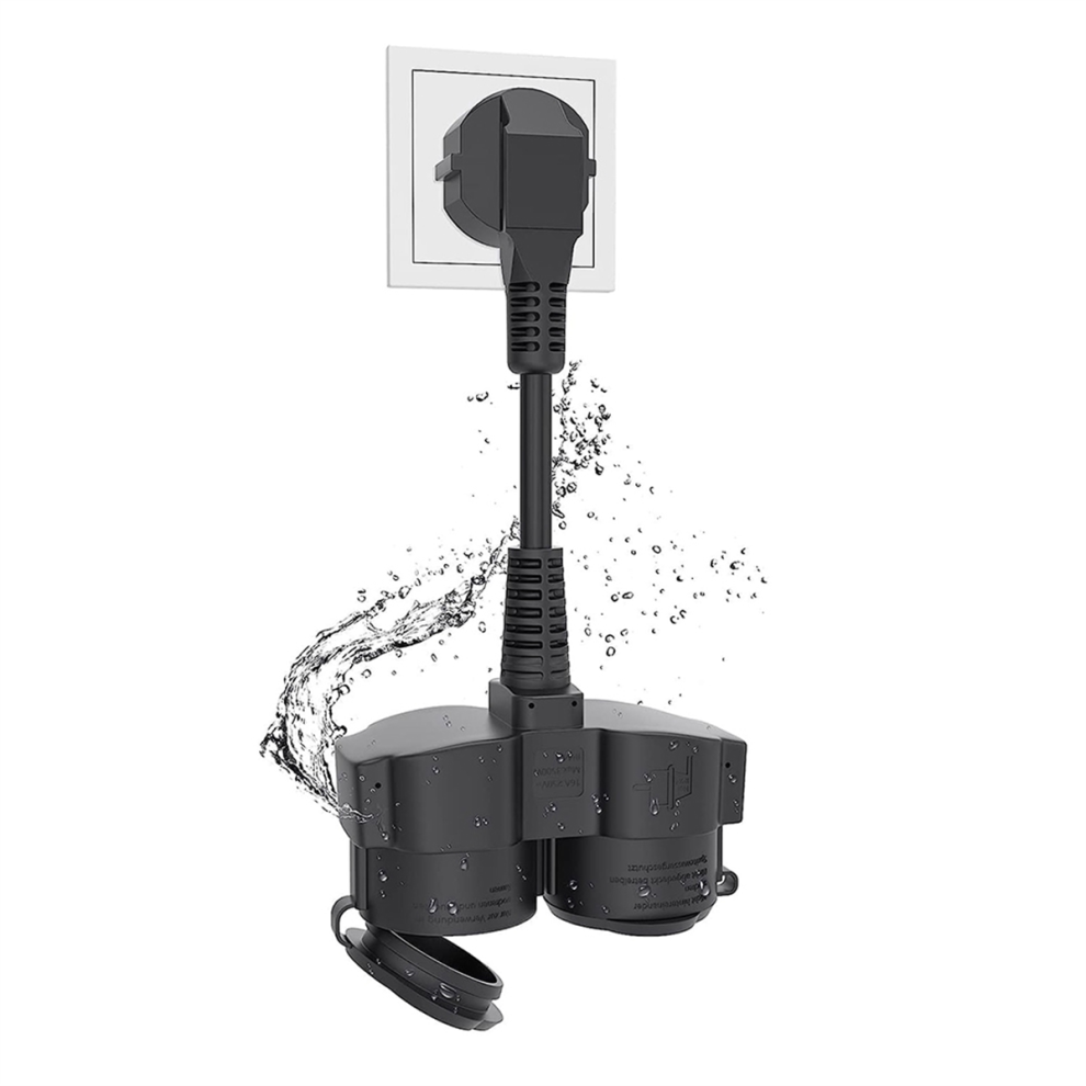 Double Plug for Socket, Extension Cable with 2 Schuko Sockets, Multiple Socket Outdoor, 16 A / 250 V,EU