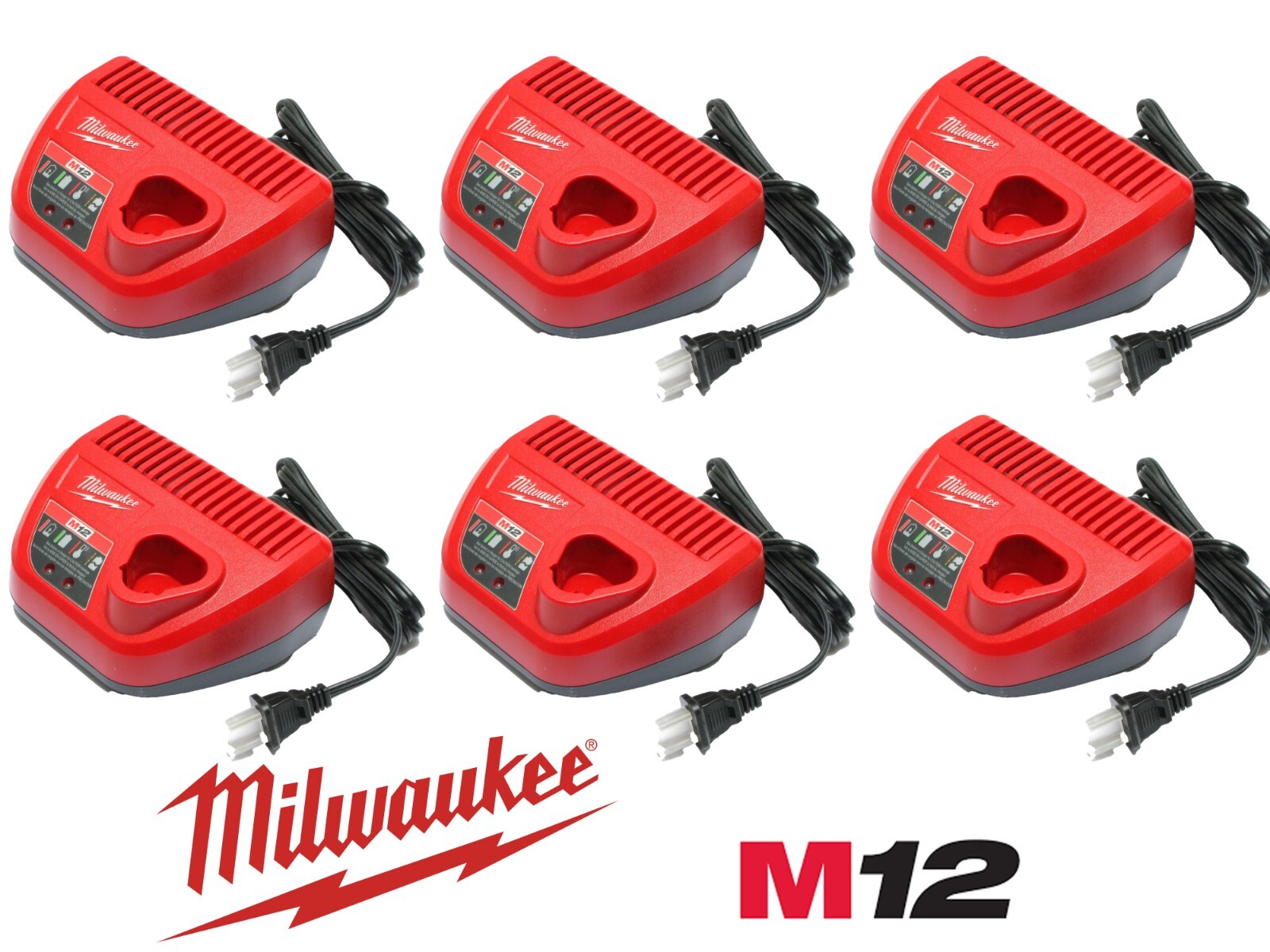 6X (Six) Genuine Milwaukee M12 48-59-2401 Lithium Ion Battery Charger (USA Plug)