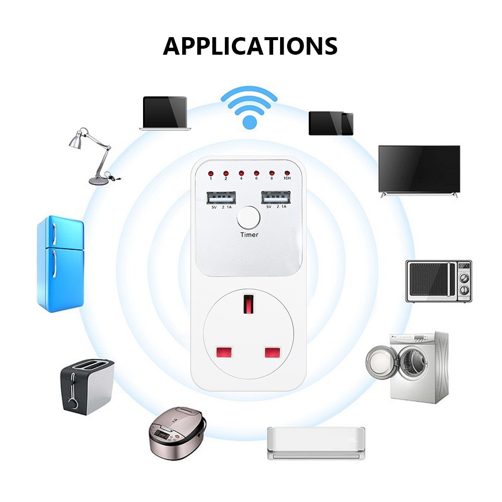 *Countdown Timer Socket With 2 USB Ports 5V 2.1A Outlet Plug-in Time Controller