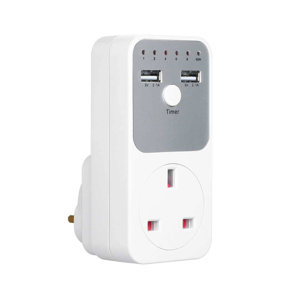 Countdown Timer Socket With 2 USB Ports 5V 2.1A Outlet Plug-in Time Controller