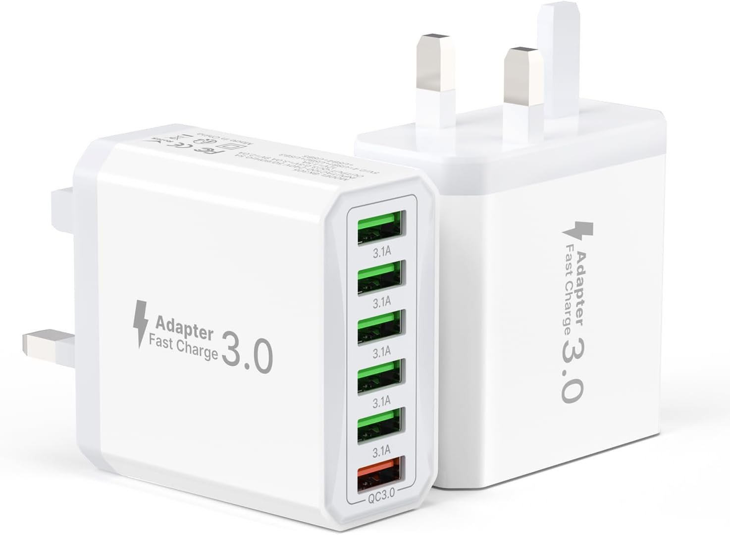 2-Pack 33W USB Plug UK, 6-Port USB Fast Charger Plug Multiple with Quick Charge