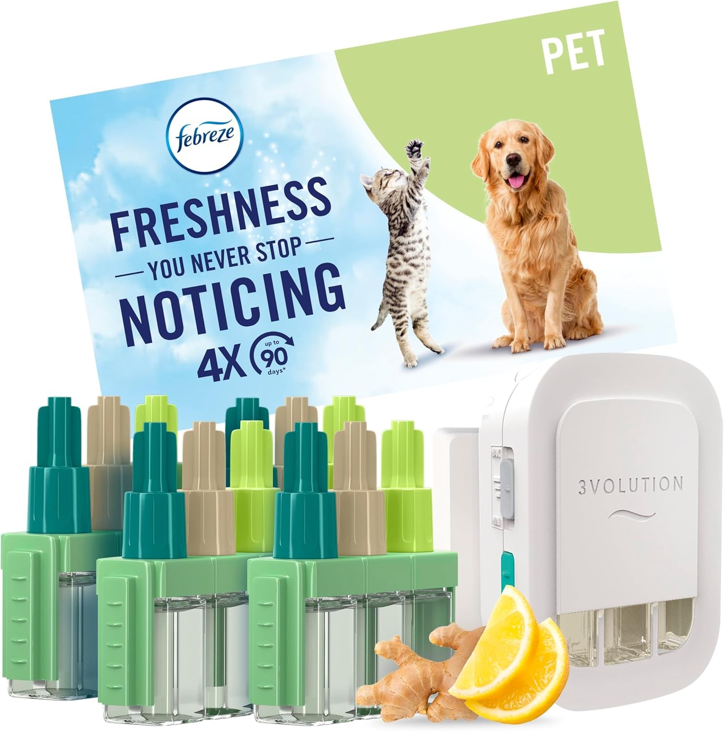 Febreze 3Volution Plug-In Air Freshener Starter Kit with 4 Refills – Pet Odour E