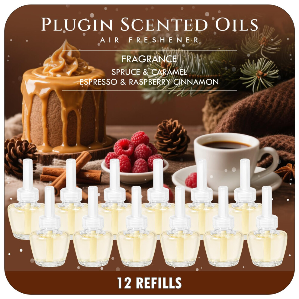 Scent-Hi Plug in Air Freshener Refills 12 Pack, Home Fragrance Plug in Diffuser Refill, Compatible with Air Wick & Glade Plugin(Spruce, Caramel,
