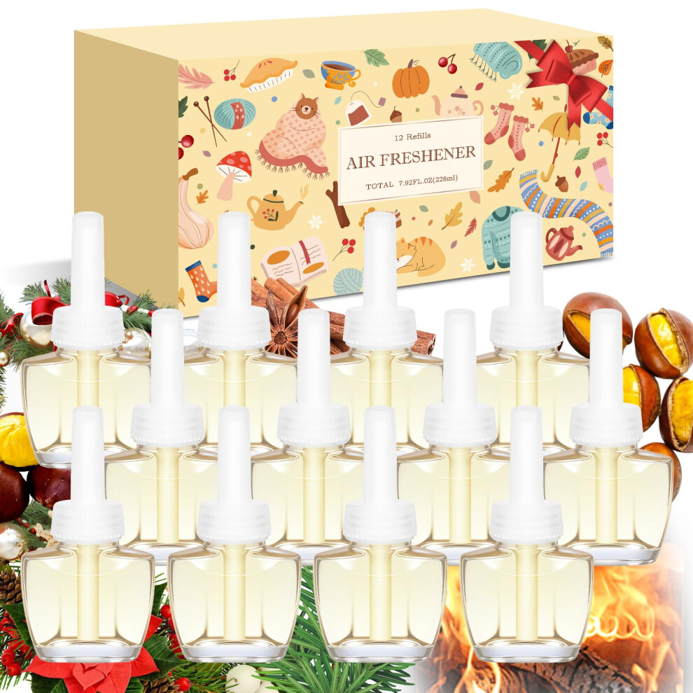 Scent-Hi Plug in Air Freshener Refills 12 Pack, Home Fragrance Plug in Diffuser Refill, Compatible with Air Wick & Glade Plugin(Fireside Ember, Winter