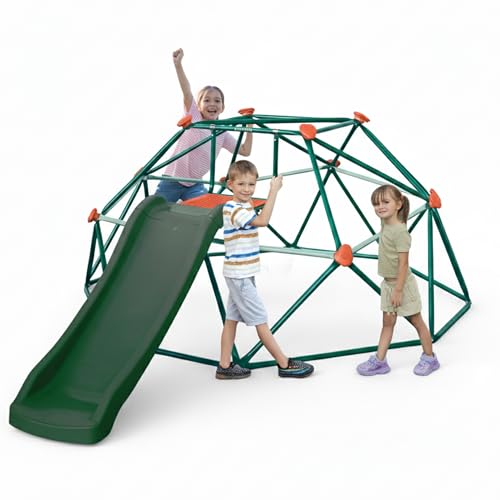 Plum Play Metal Deimos Climbing Frame Dome with support hand grips - 3 years plus - 190 x 190 x 90cm (Green With Slide)