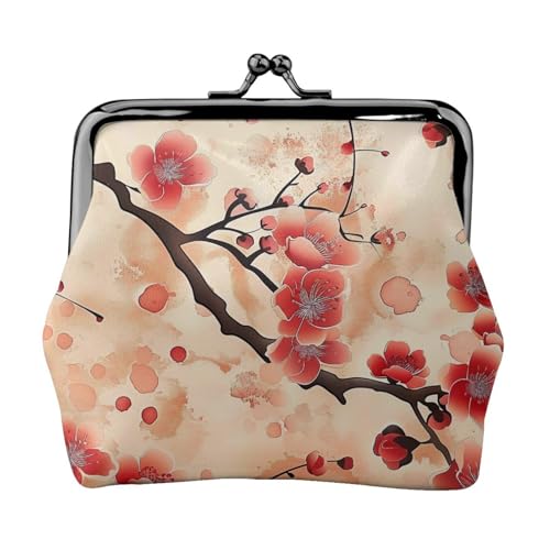 Japanese Plum Floral Print Coin Purse, Faux Leather Coin Purses with Kiss Lock, Makeup Bag for Women and Girls, Coin Wallet for Cash, Coin, Key, Lipstick