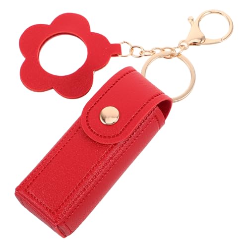 ORFOFE Red Mini Lipstick Holder Keychain with Plum Blossom Mirror Compact Makeup Bag Charm for Women, Portable Lipstick Organizer with Keyring for Travel and Daily Handbag Carry
